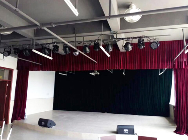 廣州黃岡中學(xué)距離爵士龍音響廠家不算遠,校方也是聽聞爵士龍廠家的實力就直接上門來訪的,在專業(yè)工程師與校方領(lǐng)導(dǎo)的前期溝通下,工程師去到學(xué)校考察了場地,教工之家的娛樂室不算很大,有個小舞臺,音響設(shè)備選用雙十五寸音箱搭配CU系列舞臺返聽即可滿足日常演出需求,再配上專業(yè)燈光設(shè)備,就能擁有一個炫彩動感的舞臺效果。