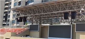 在對戶外體育場擴聲系統設計過程中,JSL爵士龍工程師根據該體育場的實際情況制定了合理、精準可靠的擴聲系統設計方案,考慮到產品在風吹、日曬、雨淋之后是否仍然能夠提供清晰明亮的音質,正因為這一點,所有部件按IP56國際標準進行設計,并在箱體上特別設計了導流、防噴濺裝置。
