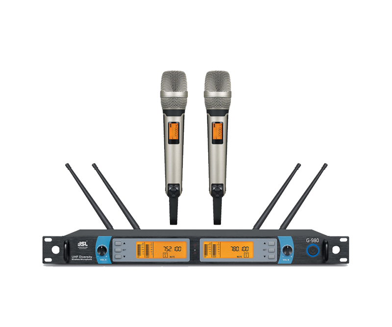 8.本系統內任何一支話筒與任何一臺接收機都可對上頻,徹底解決了固定頻率麥克風不通用的缺點,適合多套產品在同一場合使用;高保真音色,獨特的干擾噪音靜噪功能;
