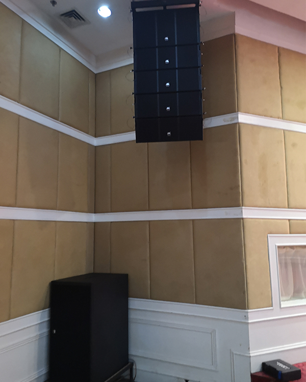 安裝完成后,整個(gè)多功能廳的聲場(chǎng)不僅得到了均勻的覆蓋,而且音質(zhì)清晰、高保真,沒(méi)有刺耳的噪音。多功能廳的觀眾席處均有適合的響度、均勻度、清晰度和豐滿度,不出現(xiàn)回聲、顫動(dòng)回聲和聲聚焦等影響音質(zhì)的缺陷。聲場(chǎng)覆蓋具有完好的一致性,聲場(chǎng)分布均勻,系統(tǒng)失真率低,以滿足各種宴會(huì)對(duì)音質(zhì)高品質(zhì)的要求;同時(shí)音響系統(tǒng)語(yǔ)言清晰并音色透亮,還能夠提供足夠的功率輸出峰值和連續(xù)聲壓級(jí)。保證在大廳的每個(gè)角落,都能享受完美的音樂(lè)體驗(yàn)。得到了在場(chǎng)的該酒店領(lǐng)導(dǎo)一致好評(píng)。