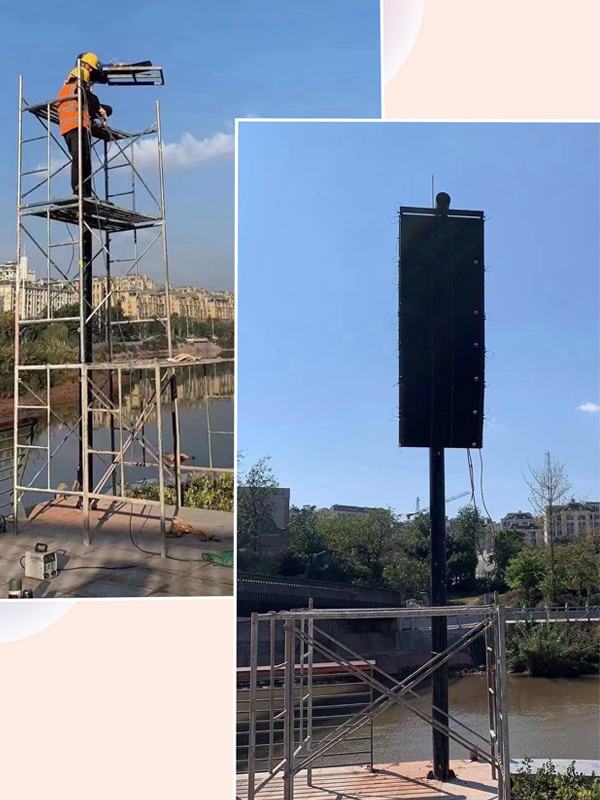 萬昌企業工程人員根據月亮湖濕地公園的面積,計算出擴聲所覆蓋的范圍,結合該公園的特色景觀--大型噴水秀,最終決定采用爵士龍LA系列雙10寸線陣列和CA系列功率放大器;