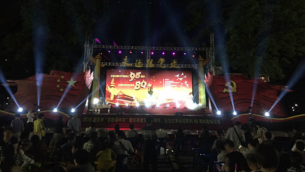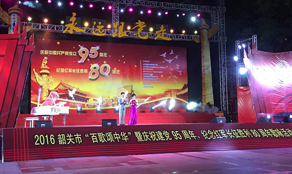 為慶祝建黨95周年、紀念紅軍長征勝利80周年,廣東韶關市政府舉辦了“百歌頌Z華”歌詠活動大賽,吸引了全市區眾多愛好唱歌的朋友參加,大家用嘹亮動聽的歌曲,表達對祖國的祝福、對先烈的敬意。大賽所用舞臺音響設備均有爵士龍音響廠家提供。