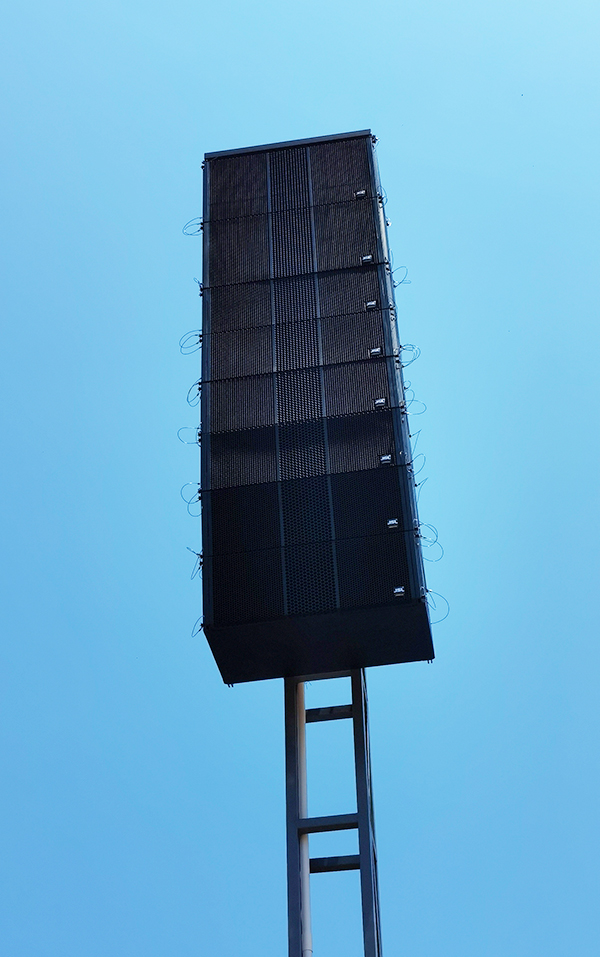 在對戶外體育場擴聲系統設計過程中,JSL爵士龍工程師根據該體育場的實際情況制定了合理、精準可靠的擴聲系統設計方案,考慮到產品在風吹、日曬、雨淋之后是否仍然能夠提供清晰明亮的音質,正因為這一點,所有部件按IP56國際標準進行設計,并在箱體上特別設計了導流、防噴濺裝置。