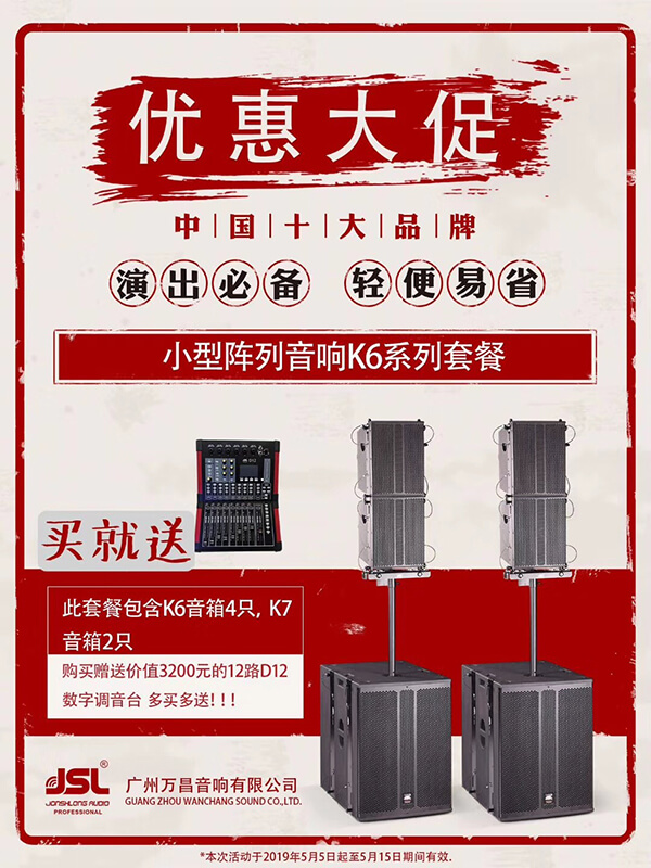 “音您而來 響您所想”萬昌音響展會期間隆重推出小型陣列音響優(yōu)惠大促活動,活動時間從2019年5月5日起至年5月15日結(jié)束,活動期間,優(yōu)惠多多,驚喜萬分,歡迎新老用戶咨詢訂購。