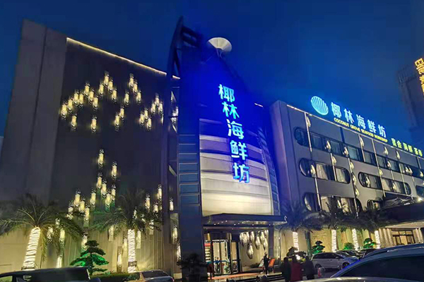 廣州椰林海鮮坊宴會廳從安裝設計到調試效果展示總用時10多天,于2020年12月初順利竣工。
