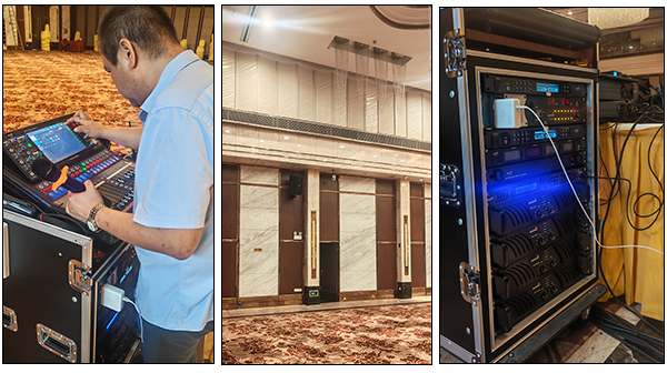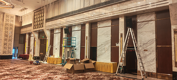 考慮到廣州珠江國際酒店宴會大廳空間大、活動類型多樣,我司專業團隊深入調研,采用線陣列音箱,均勻分布在宴會大廳四周,確保聲音能夠全面、均衡地覆蓋每一個角落,無論是前排還是后排的賓客,都能有清晰的聽覺體驗。同時,配備了專業的音頻處理設備,可根據不同活動場景快速調節音效。