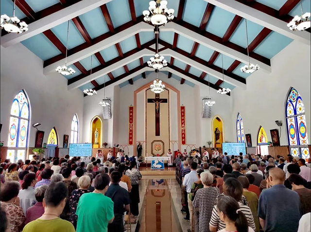 7月3日,無錫市天主教厚橋天主堂舉行建堂二十周年慶典暨本堂主保瞻禮活動。此次瞻禮感恩彌撒由天主教南京教區陸新平主教主祭,來自南京教區的20余位神父共祭;南京教區修女院及教友信眾共計400余人參與此次慶典。